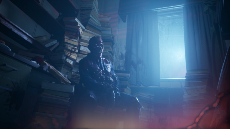 For the second trailer, we focused on the idea of fleeing. In act one, each scene has subtle signs of being abandoned in a hurry – forgotten shoes, a running shower, a steaming coffee left on the table. Act two is introduced by the alarm sounding and follows with gameplay clips as Caz fights for his life amidst gory scenes. The VO - a powerful reading of a letter from his family - perfectly accompanies this trailer, reminding the viewer of what he has left behind in the past and urging them to take the next step into his present.